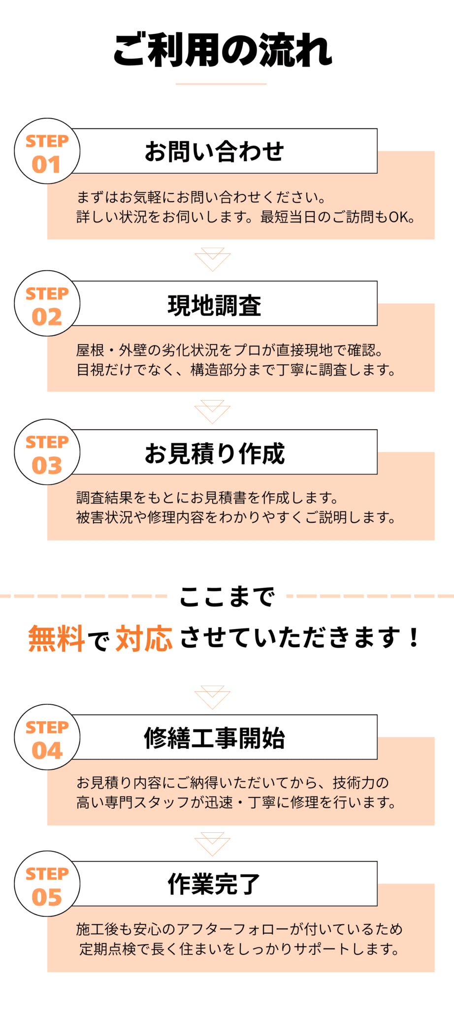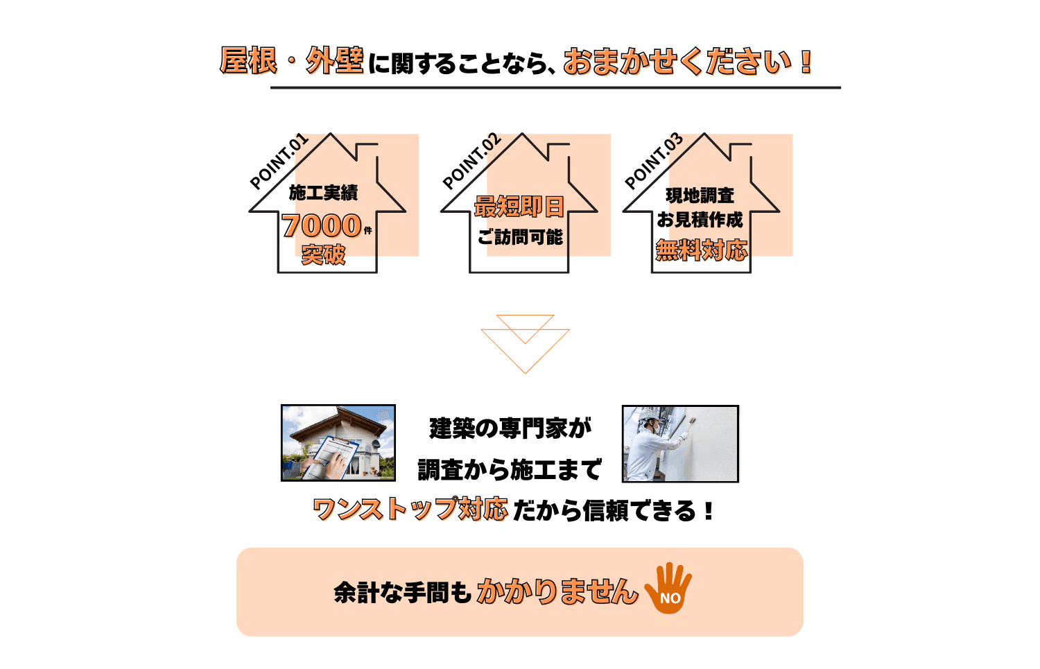 A.ご契約いただくまで費用(現地調査・お見積作成)は発生いたしません。お気軽にご相談ください。