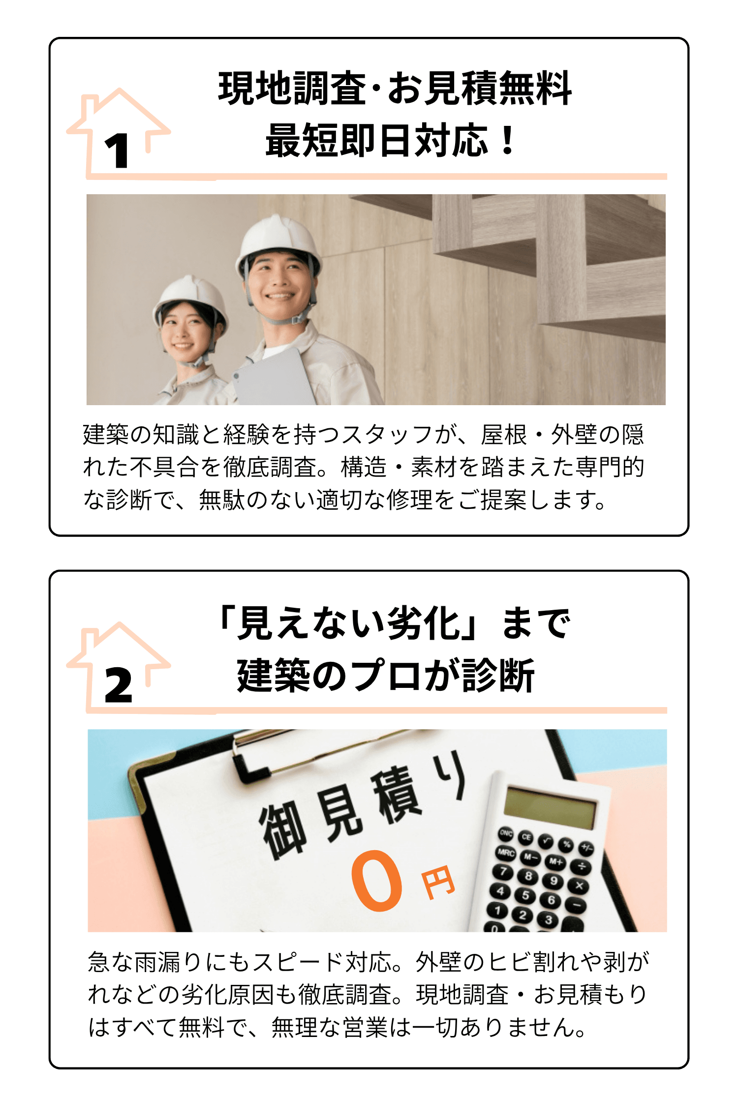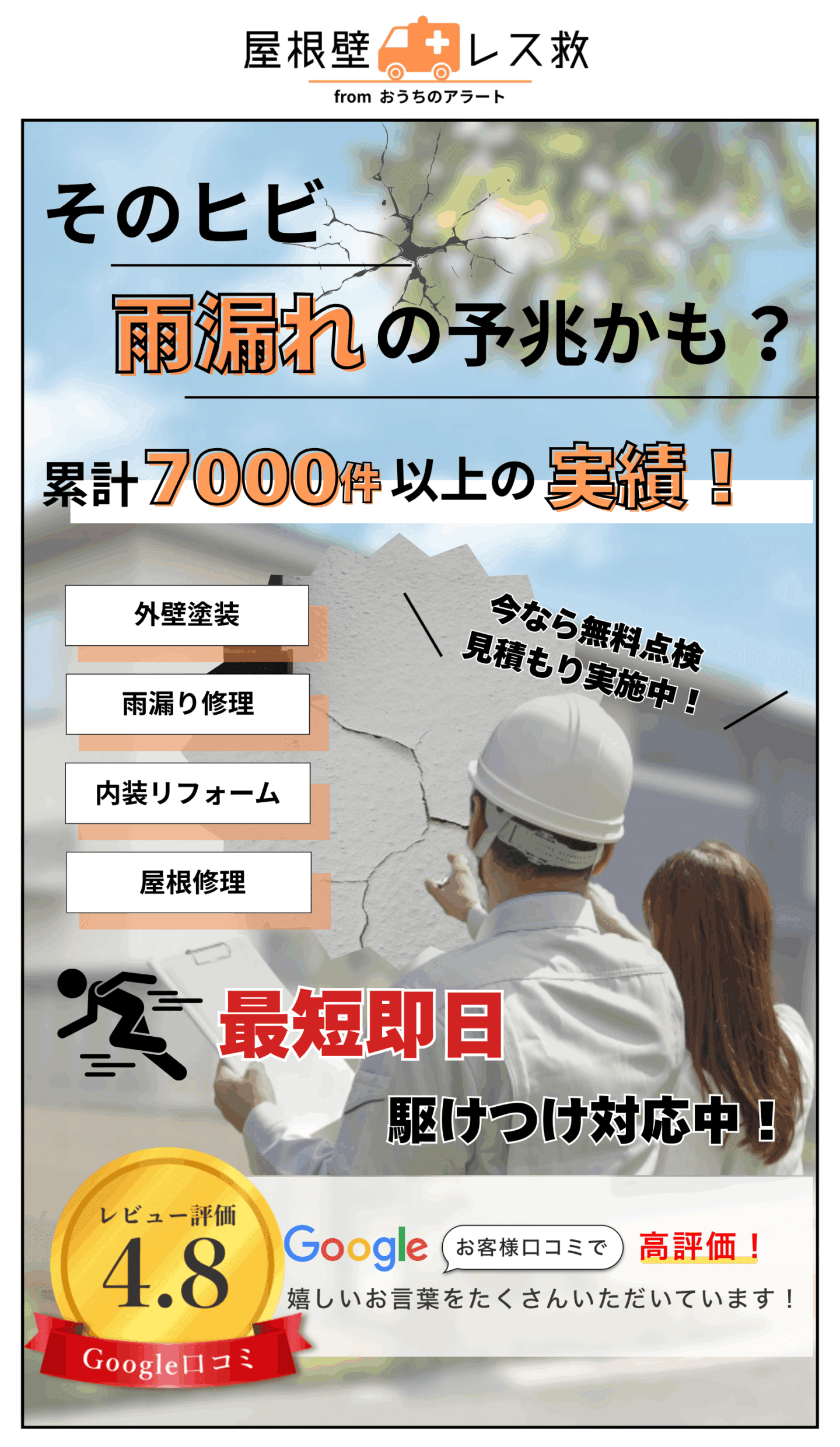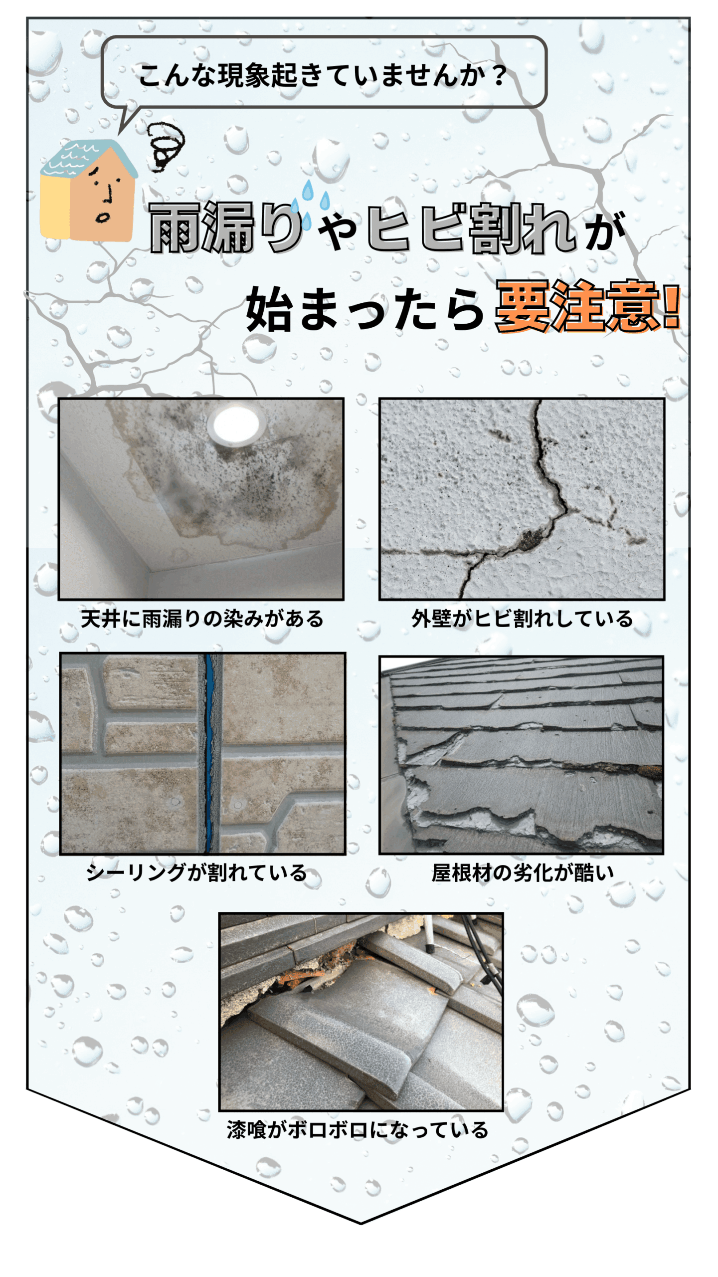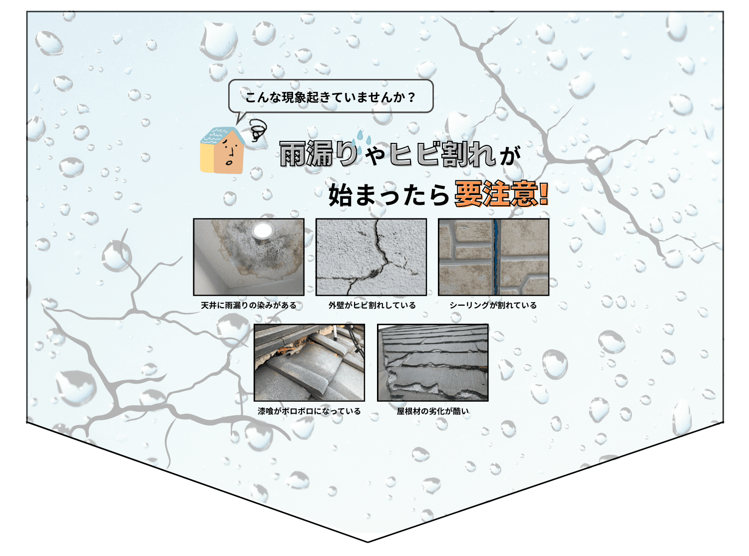 \ 雨漏り・ひび割れ、早めの対処がカギです。 /