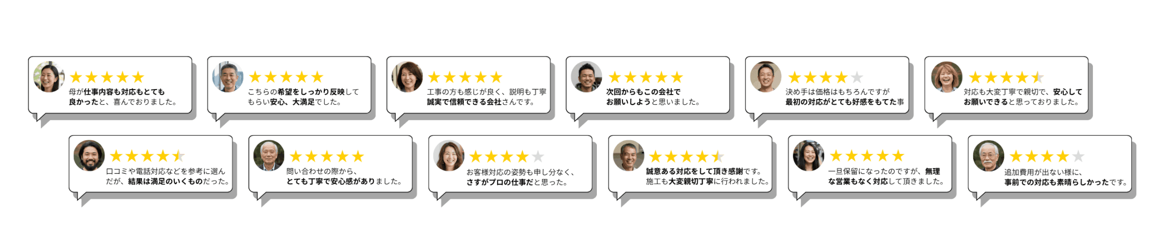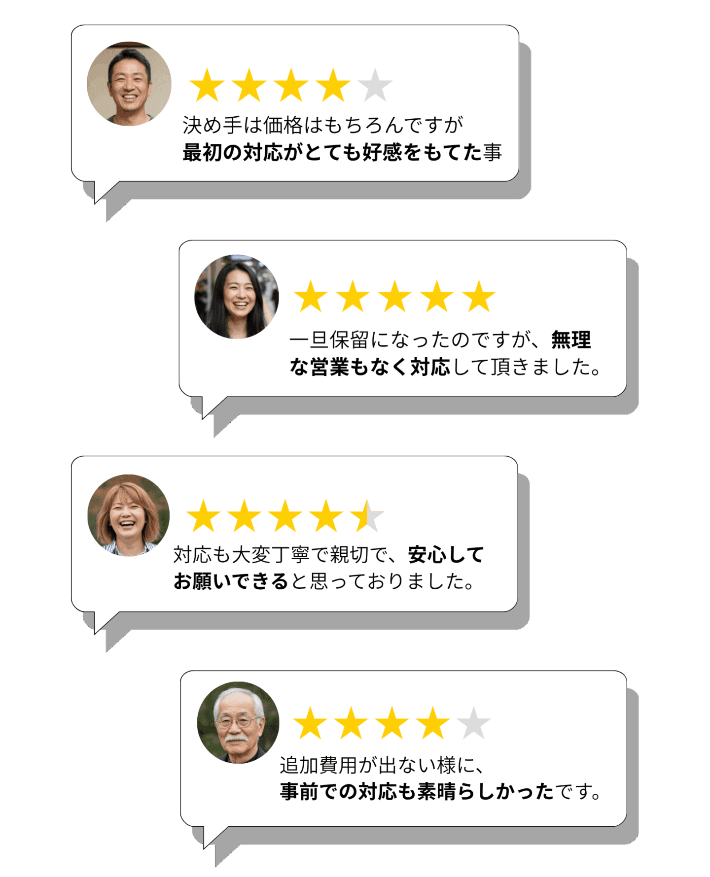 A.見積もりだけの場合、料金は一切頂きません!見積もりにご納得された上で作業させていただきますので、安心してご相談下さい!